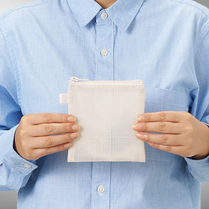 | 透け感のある全面メッシュで中身が確認しやすい仕様 |