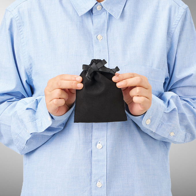| 高級感のある素材で高見えするスウェード風巾着 |