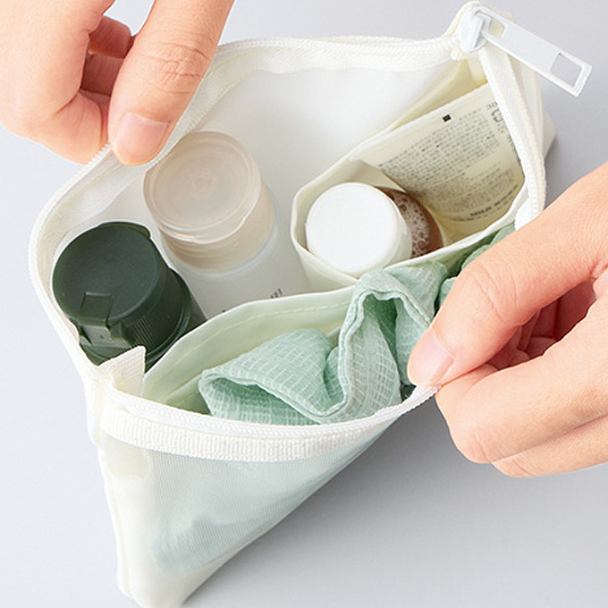 | 表面はメッシュ素材で中身が確認できて便利 |