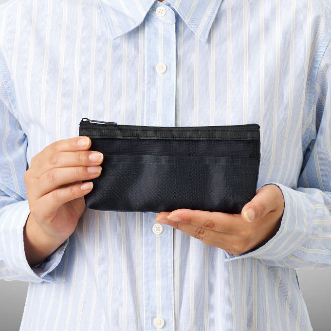 | 表面はメッシュ素材で中身が確認できて便利 |