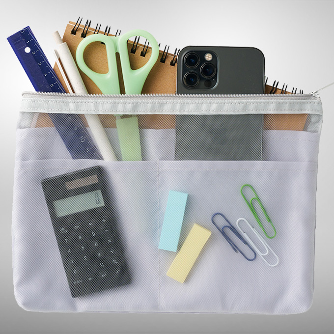 | 表面はメッシュ素材で中身が確認できて便利 |