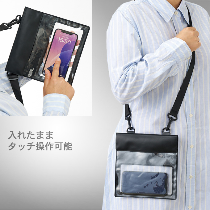 | 入れたまま操作可能。防水IPX6のウォータープルーフ |