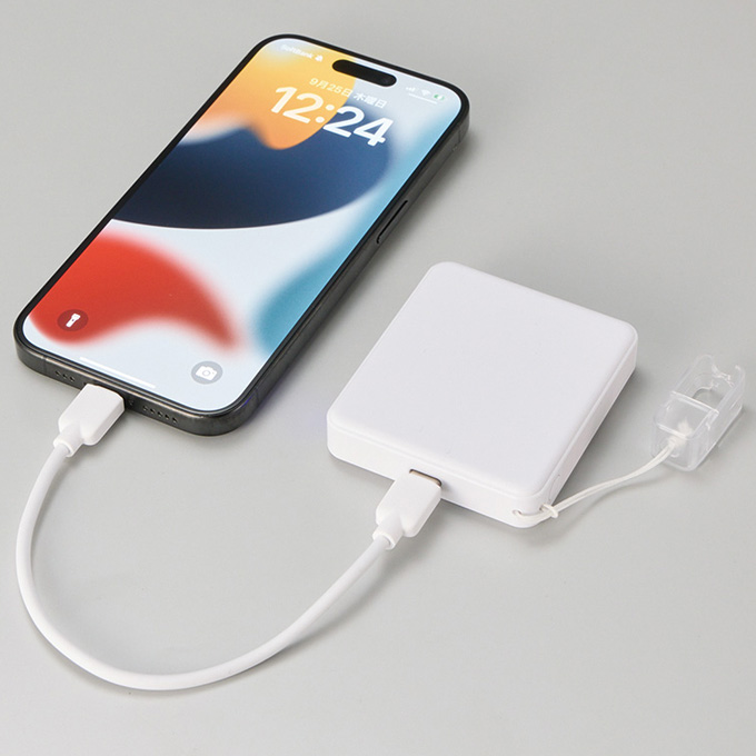 | コードストラップは本体蓄電&スマホ充電に対応 |