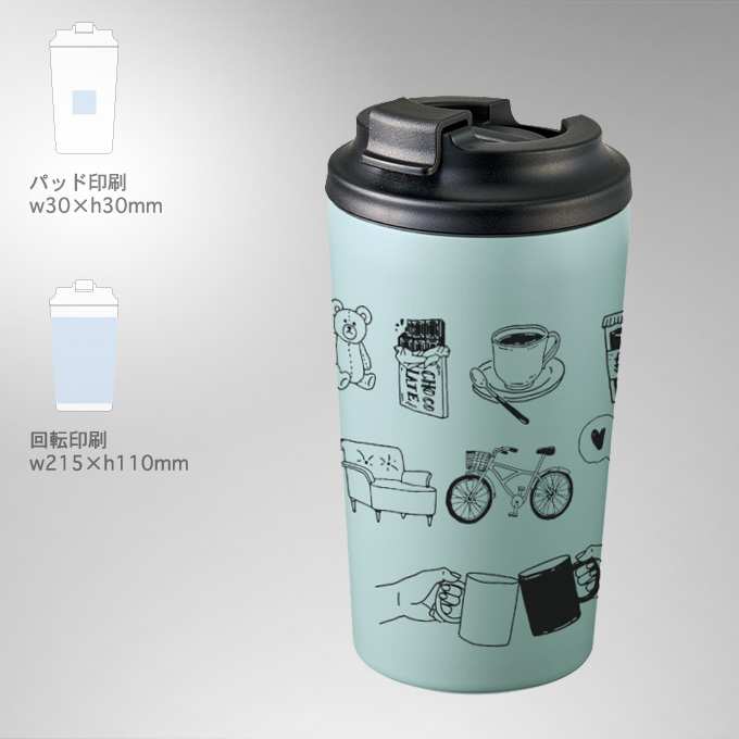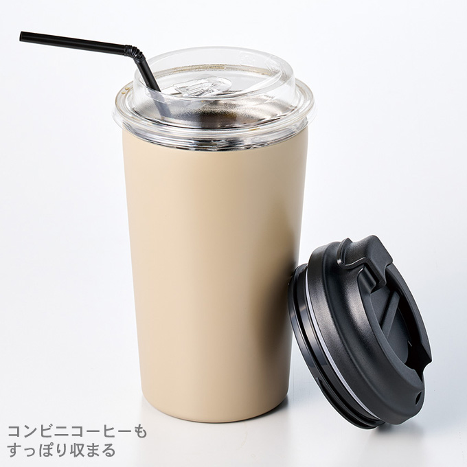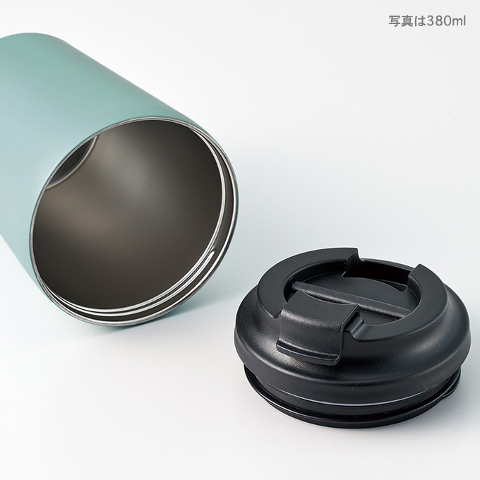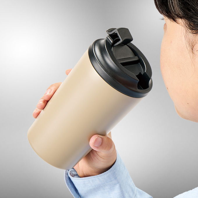 | リッド付きで飲み口の開閉もできるサーモタンブラー |