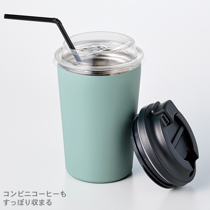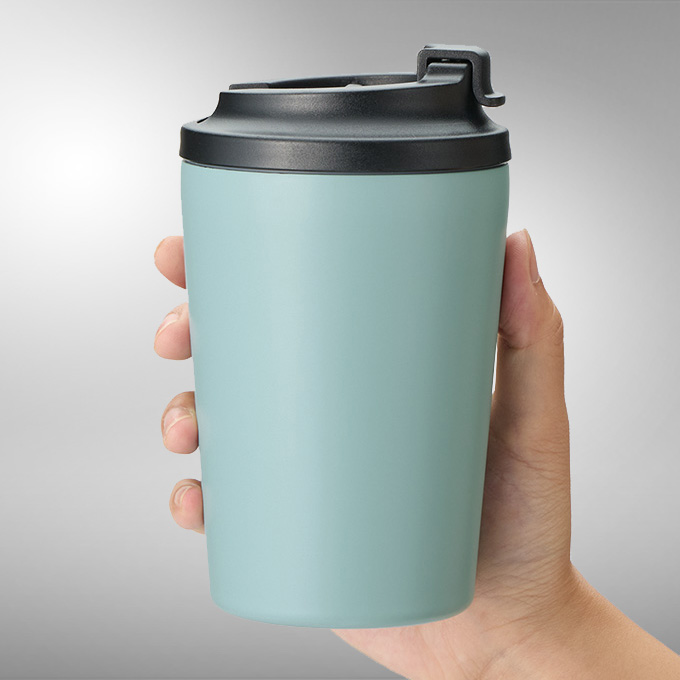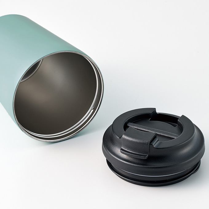 | リッド付きで飲み口の開閉もできるサーモタンブラー |