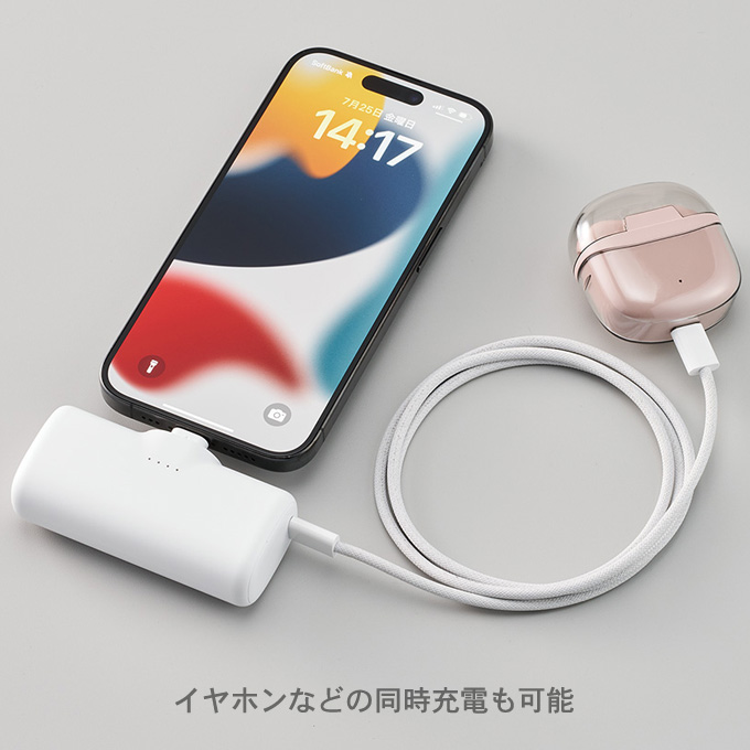 | typeCポートでスマホとイヤホンなどの同時充電にも対応 |