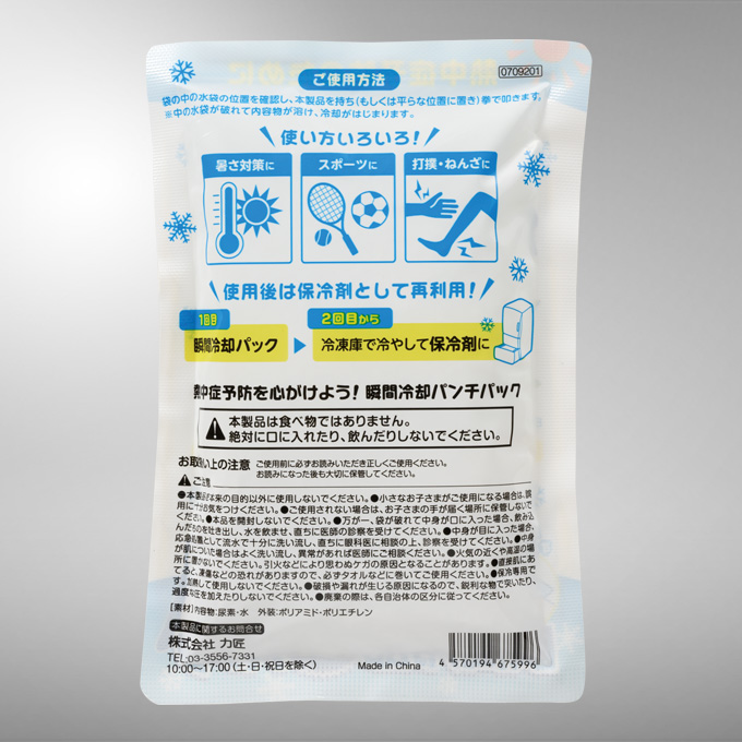 | ● 品 名 :熱中症予防の瞬間冷却パンチパック |