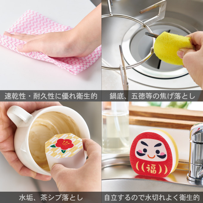 ○ 内 容 :キッチンスポンジ×1 不織布たわし×3 |