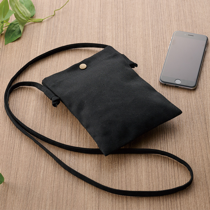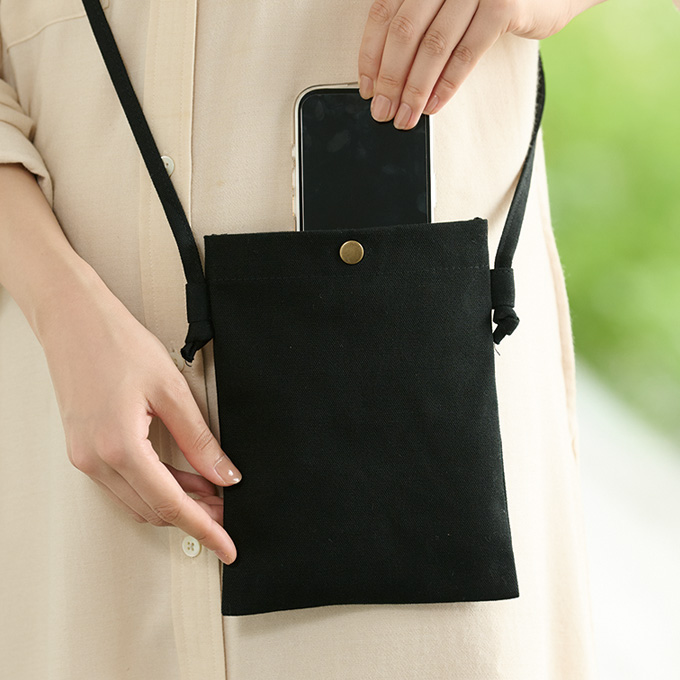 厚手コットンでスマホや小物の持歩きに便利 |