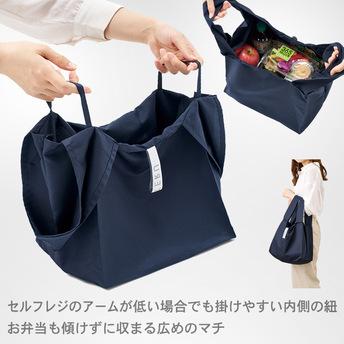 セルフレジで便利。持ち手or内側の紐をバーに引っ掛けて |