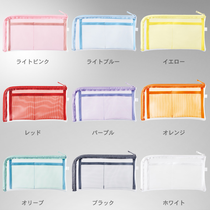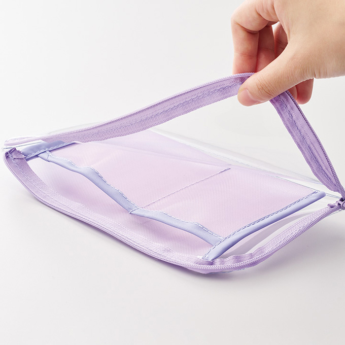| メッシュポケット付クリアポーチ。サイドはループ付で |