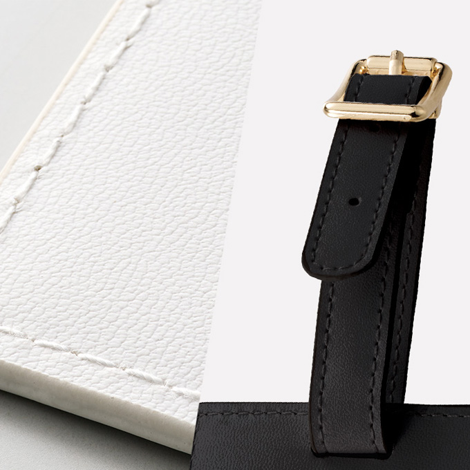 | PUレザーとゴールドの金具で高級感のあるデザイン |