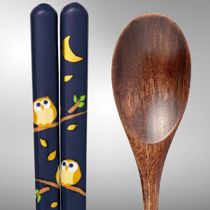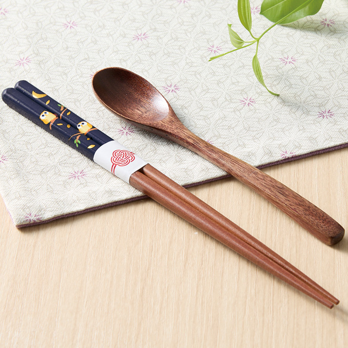 天然木箸とスプーンのセット。箸は22.5cmの男女兼用 |